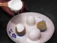 Hardy shells are formed by pouring paraffin wax and a liquid onto the egg, which are then left to dry